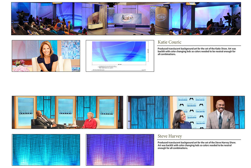 Designed and produced graphics for the Katie Couric and the Steve Harvey TV sets.