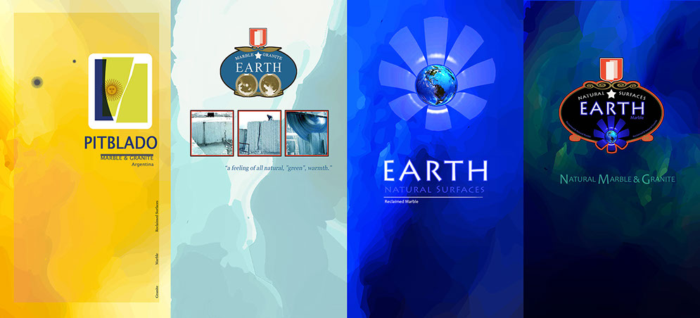 Pitblado's import businss has three areas of focus, which were three different finishes. "EARTH" is reclaimed marble, "EARTH NATURAL SURFACES" is the high end finish and "GREEN EARTH" is a product called "green" unprocessed marble and granite.
