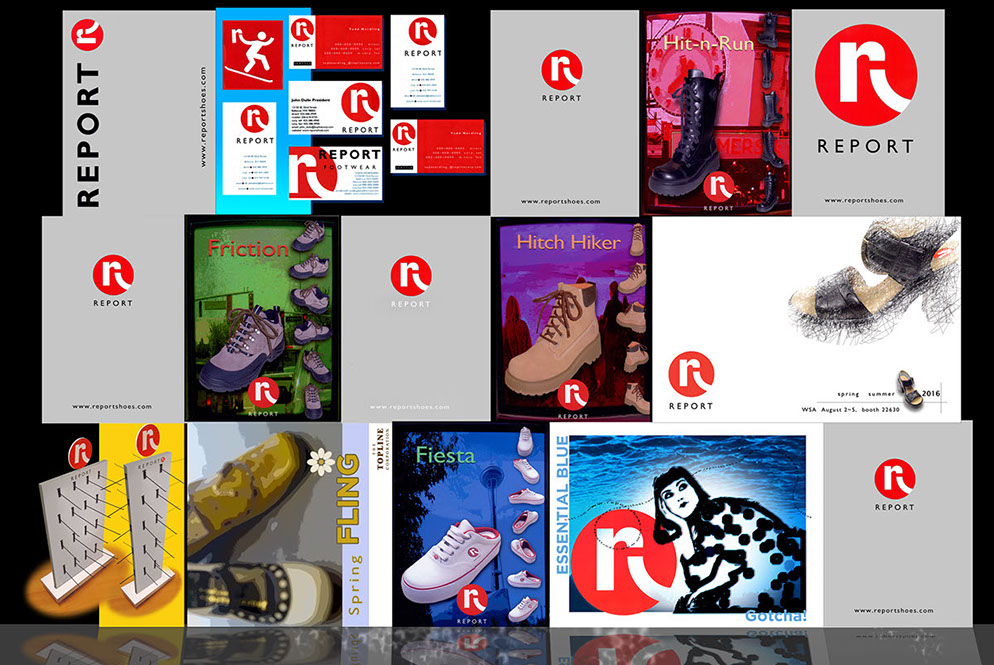 Various branding, ads and print campaigns for Report Shoes.