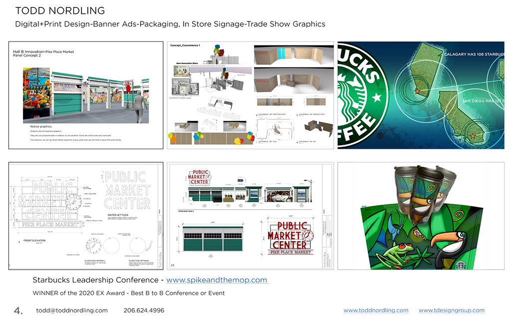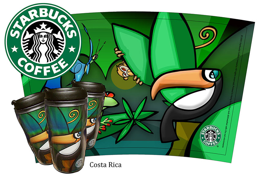 Various print and production posters and beverage cups for Starbucks.