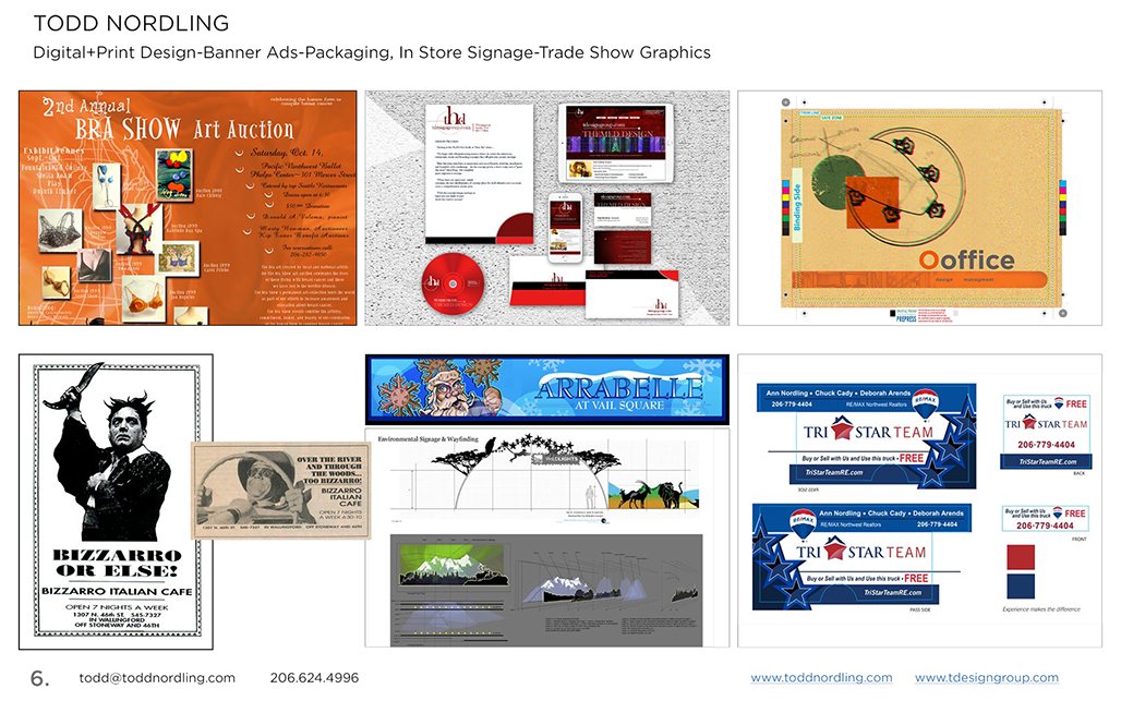 Branding and advertising, marketing material, brochures, packaging, labels, hang tags and posters.