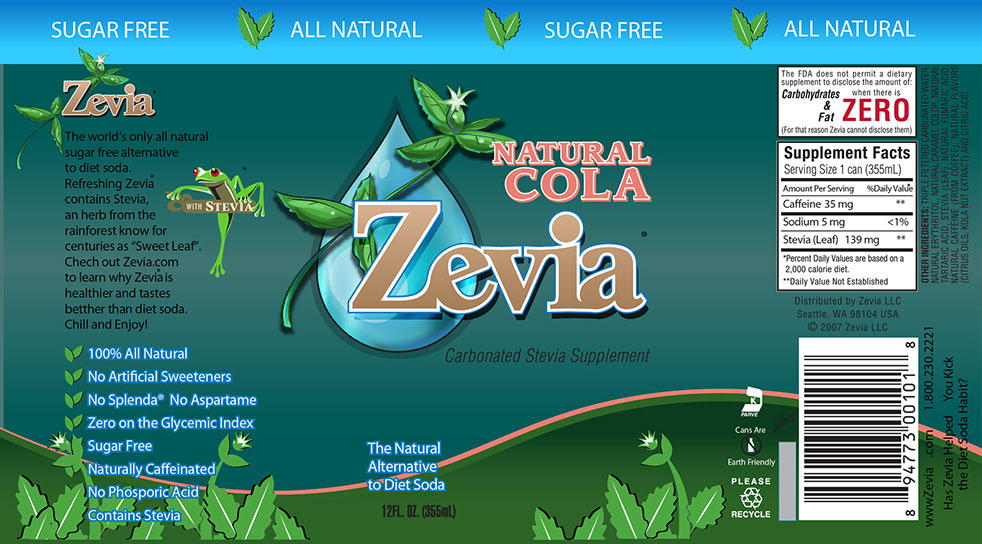 Packaging Label for Zevia Cola.
